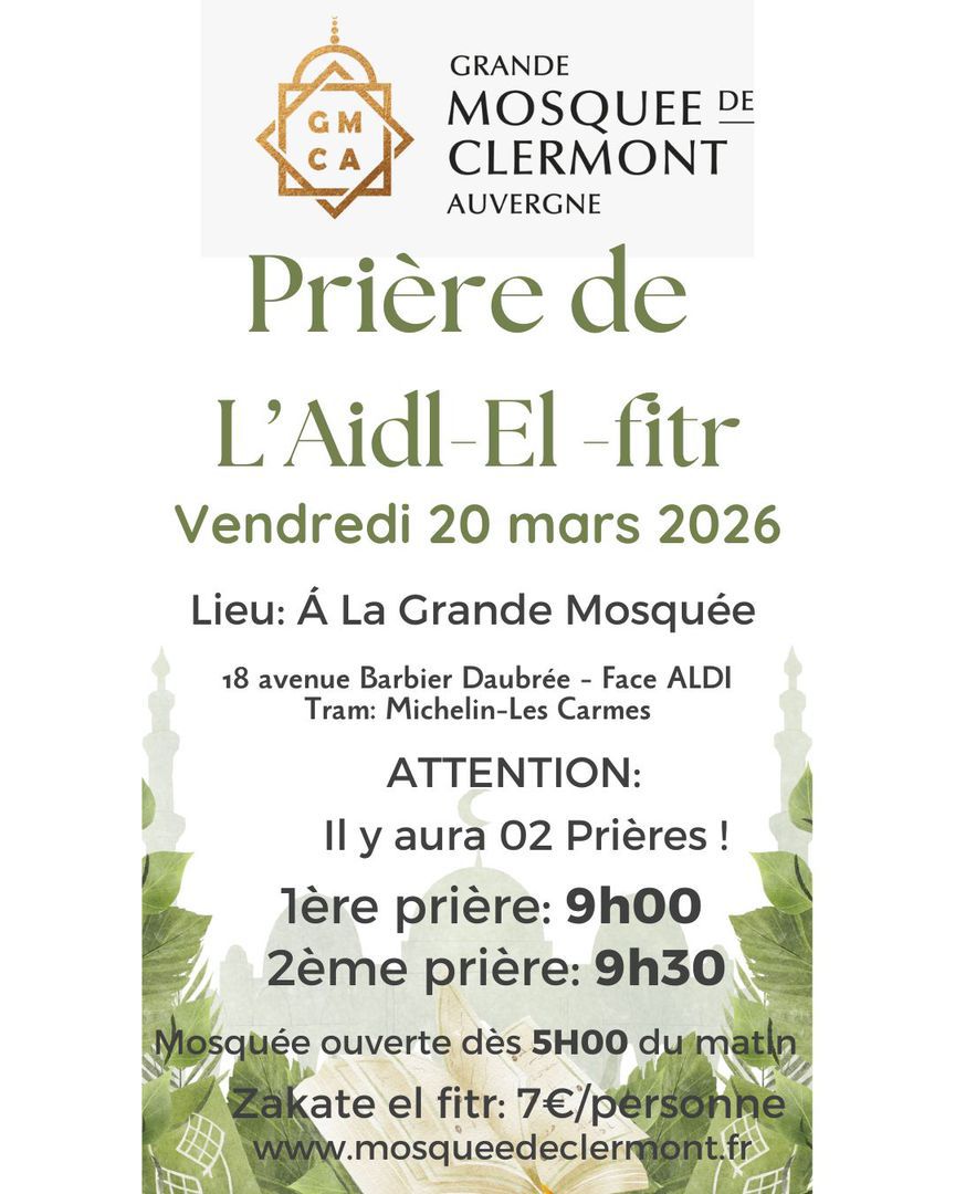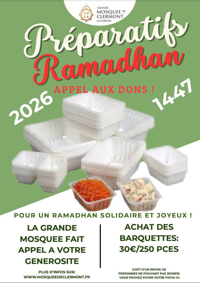 Un grand Merci à l'imam Abdelmomen pour sa direction des prières de Tarawihs et la clôture du Saint Coran lors de la nuit du destin. Pendant les trente nuits bénies du Ramadhan, il a été présent pour nous faire vivre des veillées empreintes de ferveur et de recueillement. La Grande Mosquée gardera de son passage un agréable souvenir et formule pour lui ses voeux de réussite. Comme elle exprime sa reconnaissance à la Grande Mosquée de Paris de l'avoir affecté à Clermont-Ferrand.