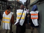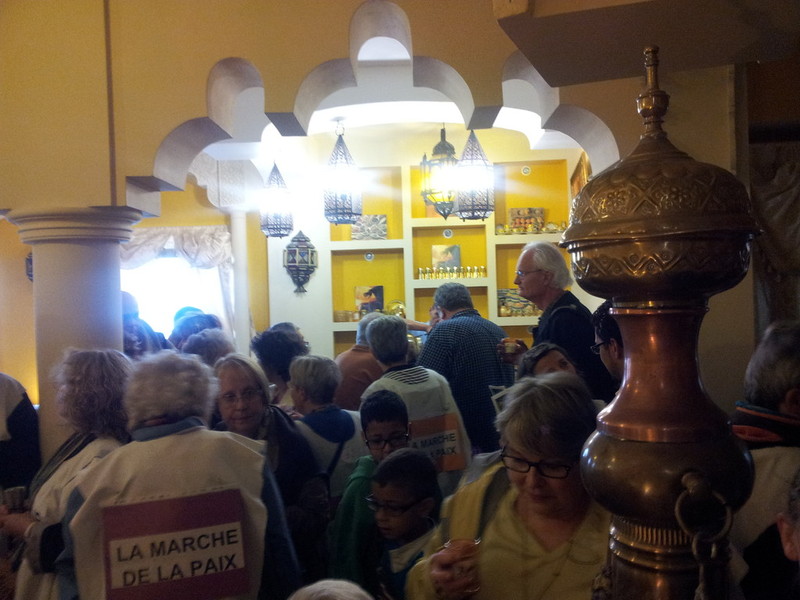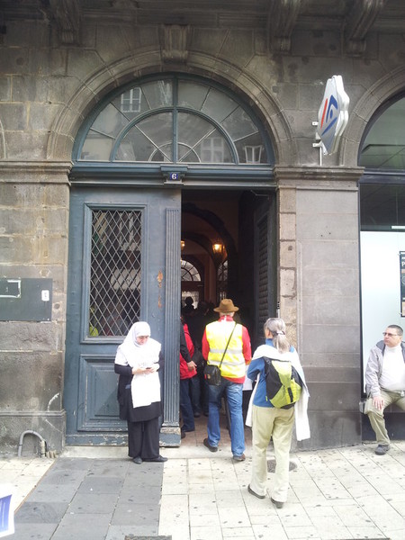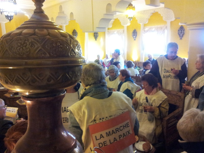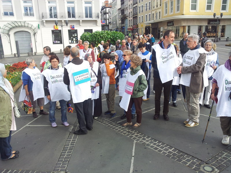 manifestation s’est déroulée sur l’ensemble de la journée. Départ à 9 heures de la grande mosquée, visite de la synagogue de la rue Blatin, à 11 heures, halte sur la place de Jaude pour un repas